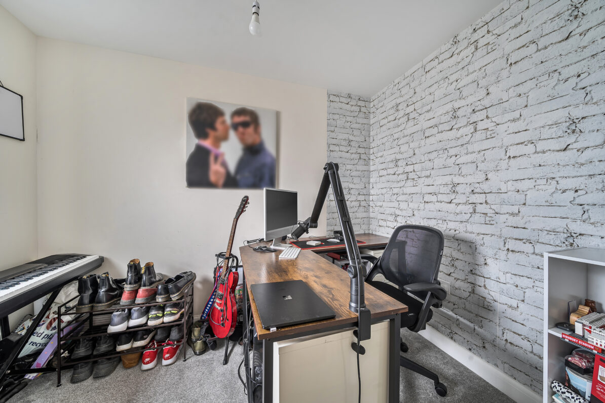 Outside benefits from a low maintenance private garden including a shed and car parking to the rear of the property.