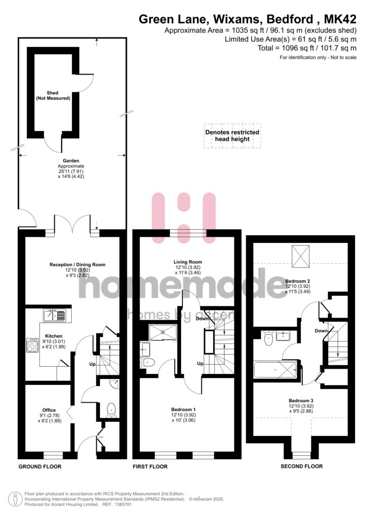 This stunning three bedroom mid-terrace house is located in the sought after area of the Wixams, Bedford. The accommodation is split over three storeys and comprises of entrance hall, office space, open plan kitchen/diner and downstairs W/C. The first floor is home to the the reception room and the master bedroom which boasts an en-suite. The final floor completes the home with two additional bedrooms and a family bathroom.