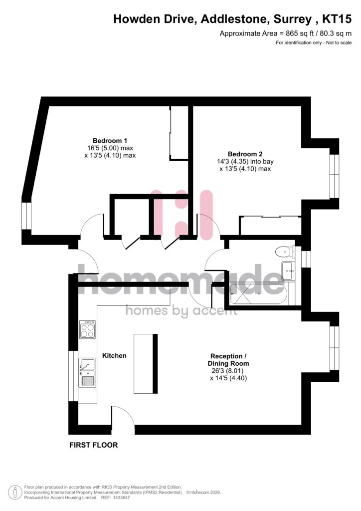Discover this cosy two bedroom first floor flat in Addlestone, Surrey. The accommodation comprises of entrance hall, open plan kitchen/dining/reception area, two bedrooms and family bathroom.