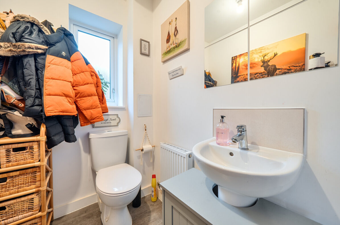 Upstairs, you will find three well-sized bedrooms and a family bathroom. Bedroom 1 enjoys generous proportions, while Bedrooms 2 and 3 are ideal for children, guests or a home office. Practicality is enhanced by dedicated storage and easy access to all rooms from the central landing.