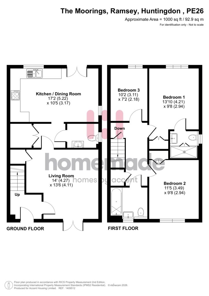 Welcome to 27 The Moorings, an inviting 3 bedroom semi-detached family home set in the sought-after market town of Ramsey. This beautifully proportioned property offers flexible living finished with a modern B-rated EPC and a well thought out layout extending over 1000 sq ft. The ground floor features a spacious living room with an open aspect that invites natural light throughout the day. The adjacent kitchen/dining room creates a comfortable hub for everyday living and entertaining, with ample space for family meals.